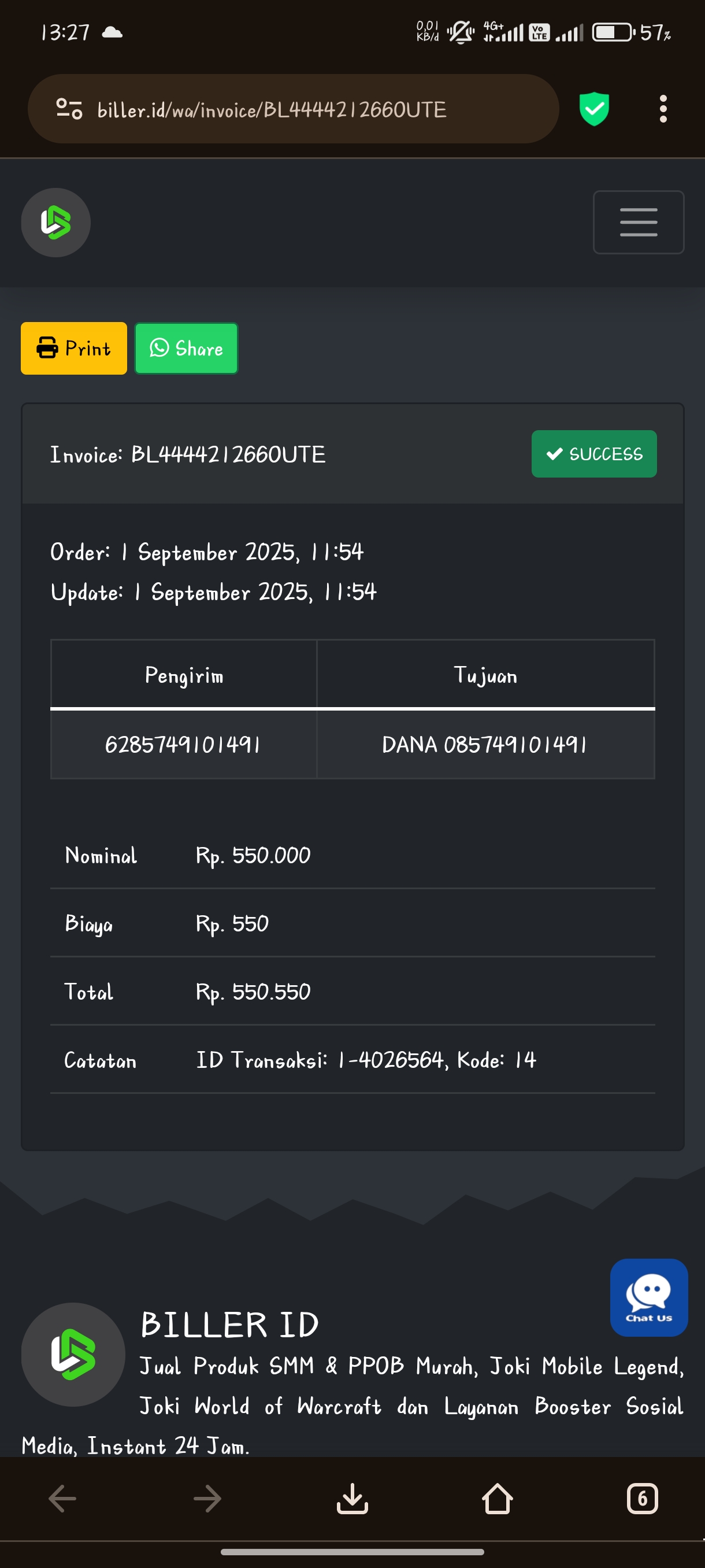 Tolong bantuannya, saya redeem dr biller id ke dana saya tunggu 1 jam belum masuk, ket masih proses, barusan saya cek lagi sudah sukses, tapi di dana belum masuk
