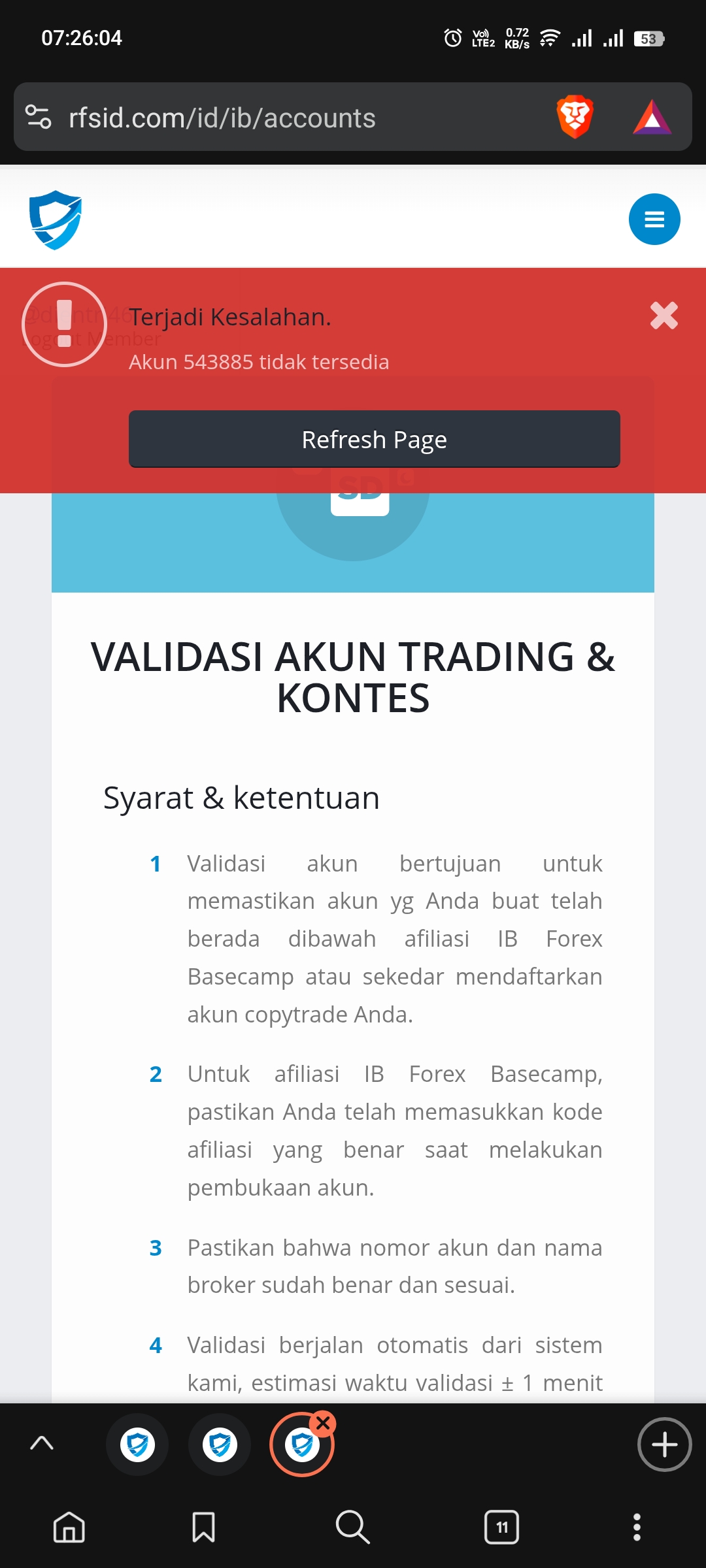 6. Refresh browser Anda (clear cache lebih disarankan). Login kembali ke cabinet Octa dan buat akun baru